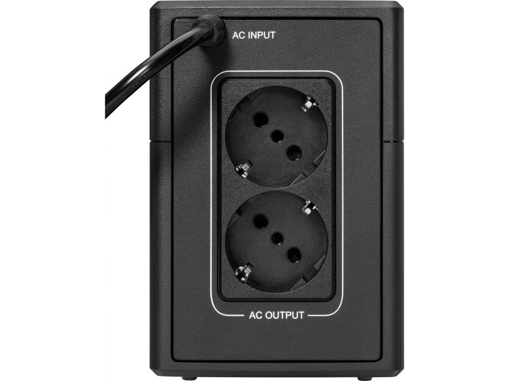 | Špeciálne funkcie | Automatická regulácia napätia (AVR) Úspora miesta vďaka kompaktnému towerovému prevedeniu Port USB kompatibilný s HID pre automatickú integráciu s hlavnými operačnými systémami (Windows/Mac OS/Linux) Obsahuje dve zásuvky Schuko (DIN) |