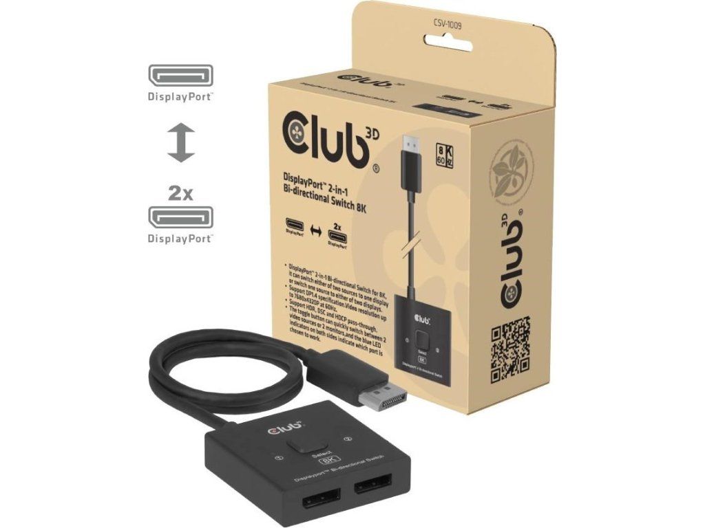 Club3D Switch, DP na 2x DP Oboustranný 2v1, 8K60Hz, 0,5m