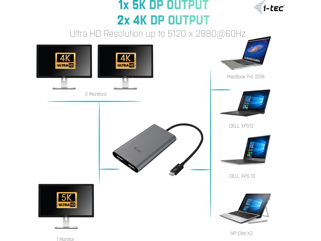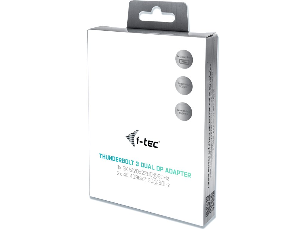 i-tec THUNDERBOLT™ 3 Dual Display Port Video Adapter pre notebooky a tablety s Thunderbolt™ 3 macOS a Windows, podporuje 1x 5K 60Hz monitor/TV alebo 2x 4K 60Hz monitor/TV