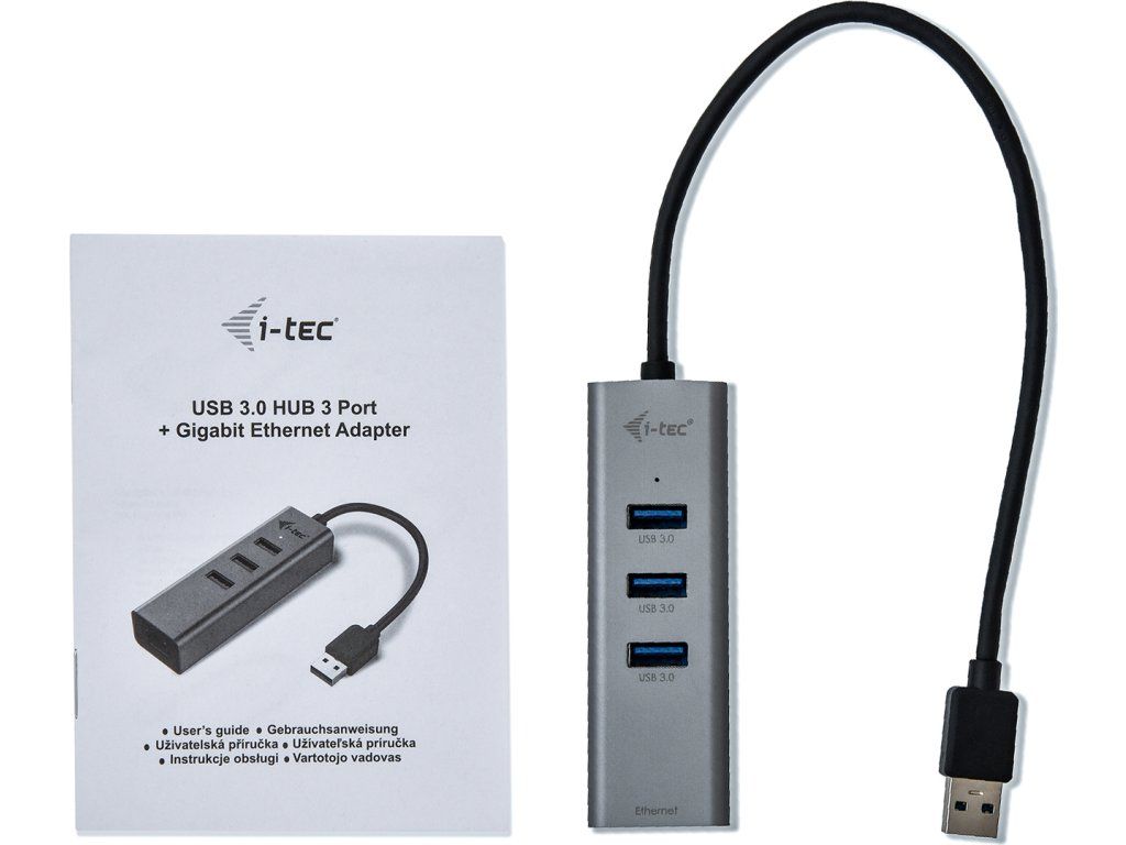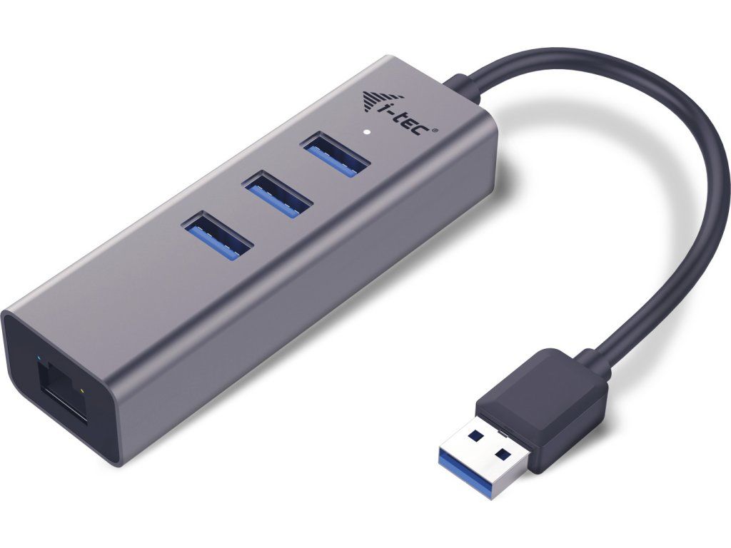 - i-tec USB 3.0 Kovový HUB 3 porty + Gigabit Ethernet adaptér s káblom (28 cm)