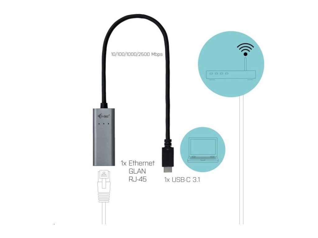 i-tec USB-C Metal 2.5Gbps ethernetový adaptér