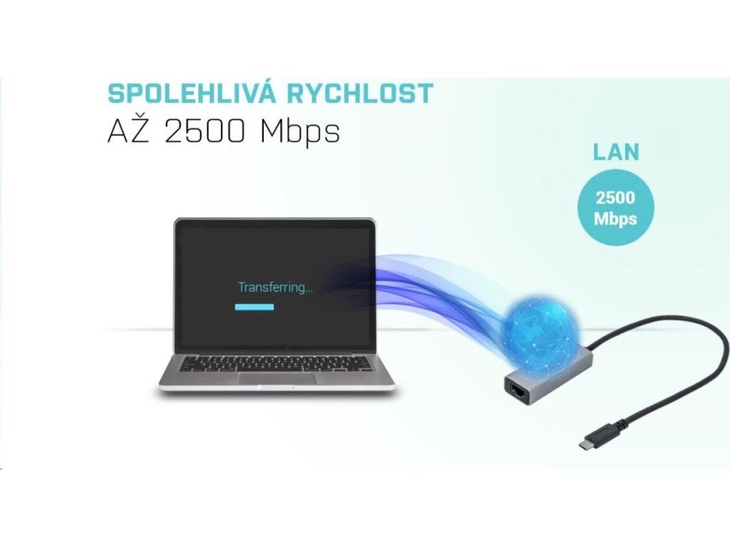 Moderný a veľmi rýchly sieťový adaptér, ktorý umožňuje ľahké, rýchle a spoľahlivé pripojenie notebooku, tabletu alebo počítača s portom USB-C alebo Thunderbolt 3/4 k firemnej sieti a internetu. Adaptér dokáže pracovať rýchlosťou 10/100/1000/2500 Mb/s, takže si môžete užívať bezpečné vysokorýchlostné internetové pripojenie bez akýchkoľvek výpadkov.