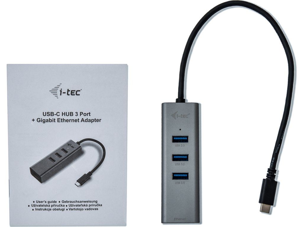 i-tec USB-C Metal HUB 3 porty + Gigabit Ethernet adaptér
