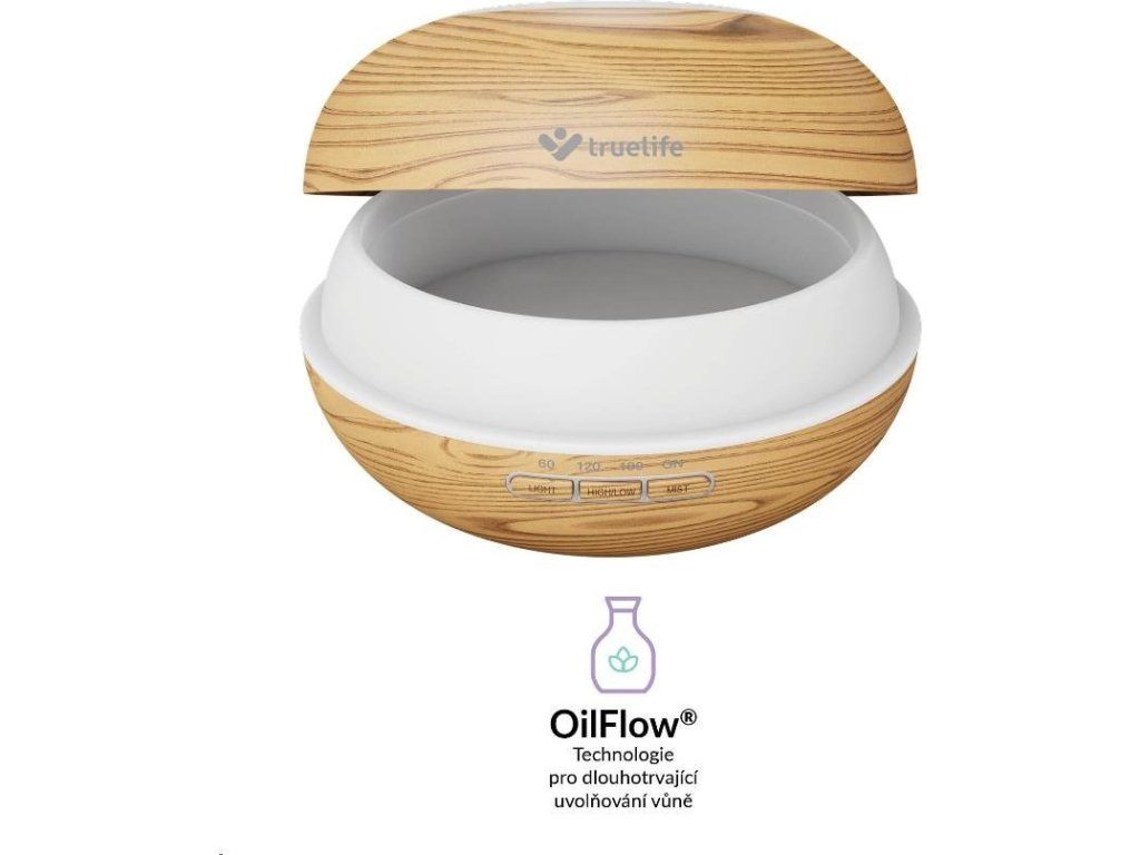 Stačí stlačiť jedno tlačidlo a aroma difuzér Truelife provoní vzduch v miestnosti vašou obľúbenou vôňou. Vytvorí vám príjemnú atmosféru na relaxáciu, cvičenie jogy alebo meditáciu. Stačí do nádržky s vodou pridať pár kvapiek vášho obľúbeného esenciálneho oleja a OilFlow technológia sa postará o zvyšok. Difuzér eliminuje okolité pachy a provoní vzduch v miestnosti vašou obľúbenou vôňou. Využijete ho aj ako zvlhčovač vzduchu. Funguje na princípe ultrazvuku, voda v nádrži sa mení na jemnú paru, ktorá sa mieša so vzduchom v miestnosti a takmer okamžite ju zvlhčuje na optimálnu hodnotu.