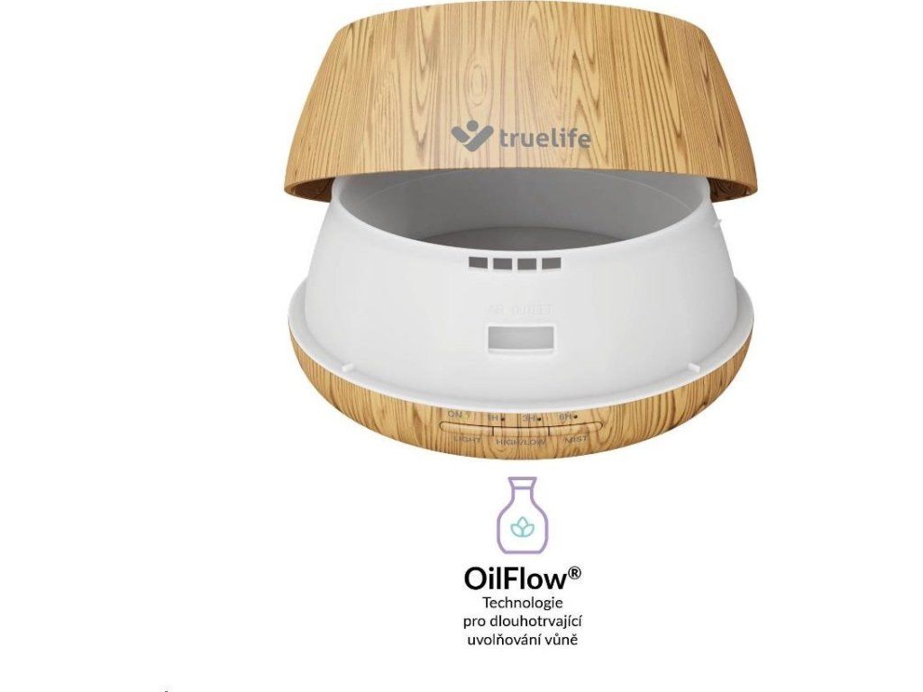 Difuzér Truelife so zabudovaným reproduktorom prevoní vzduch v miestnosti vašou obľúbenou vôňou behom niekoľkých málo okamihov. Vďaka Bluetooth konektivite slúži aj ako prenosný reproduktor a vašej aromaterapeutickej chvíľke tak nebude chýbať ani hudba podľa vašich predstáv. Užite si príjemnú meditáciu alebo relaxáciu v pohodlí domova. Do nádržky s vodou pridáte pár kvapiek esenciálneho oleja a OilFlow technológia sa postará o zbytok. Difuzér eliminuje okolité pachy a pomocou štyroch vývodov príjemne prevoní vzduch v miestnosti. Využijete ho ale aj ako zvlhčovač vzduchu. Funguje na princípe ultrazvuku, vodu v nádrži mení na jemnú paru, ktorá sa miesi so vzduchom v miestnosti a takmer okamžite ho zvlhčuje na optimálnu hodnotu.