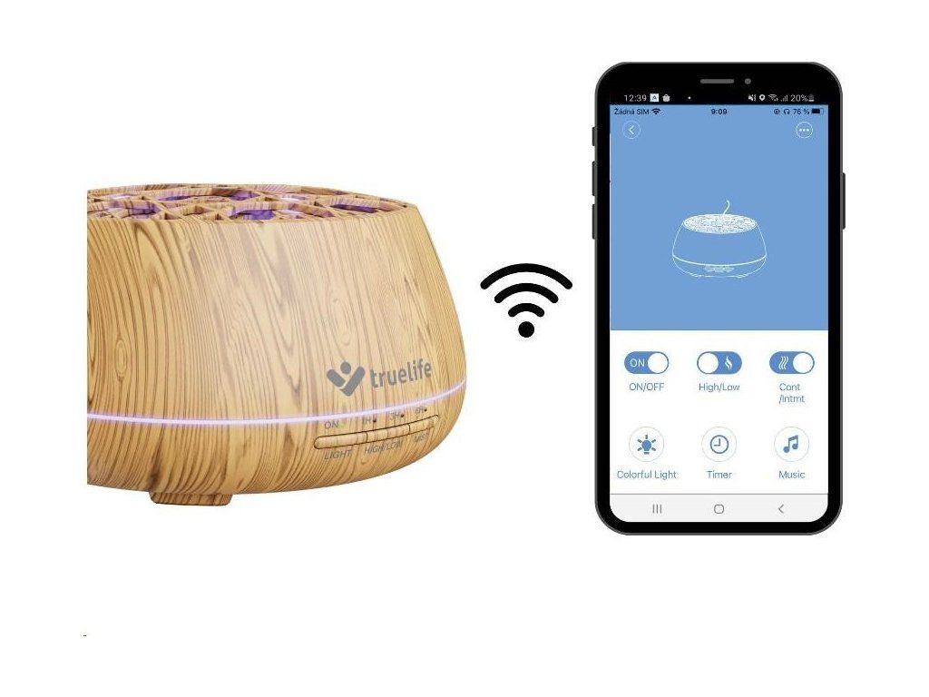Difuzér možno pripojiť na Wi-Fi sieť a ovládať prostredníctvom aplikácii TrueLife Smart.